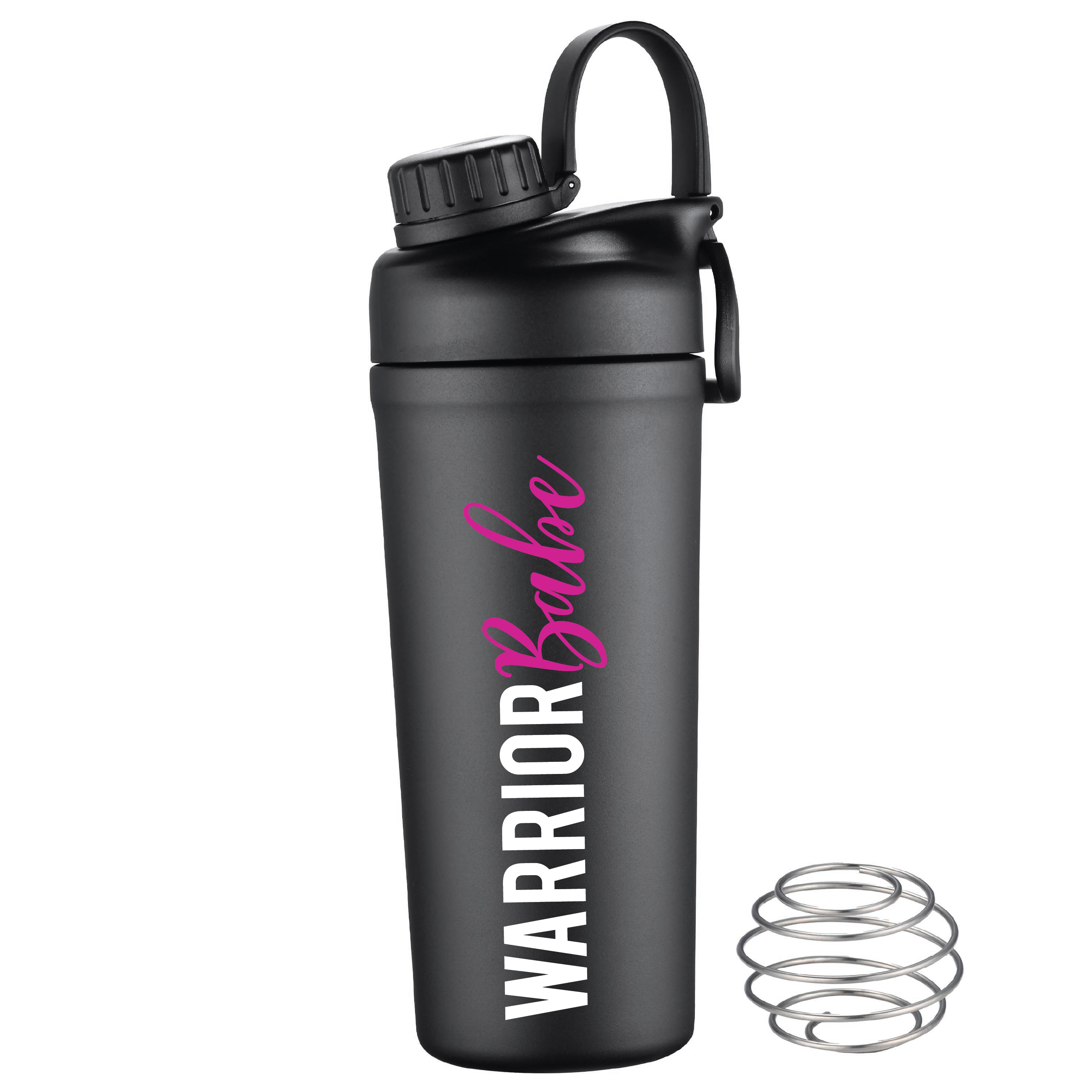 Mix and go with the Shaker Bottle with Stainless Steel Agitator. The included whisk blender ball increases the speed of blending ingredients like protein powder or infusing fresh fruit into the liquid. The double wall insulation keeps drinks hot or cold. Features a leakproof screw off cap for the drinking spout and the main lid screws off to easily add contents. BPA Free, Lead Free and FDA Compliant.